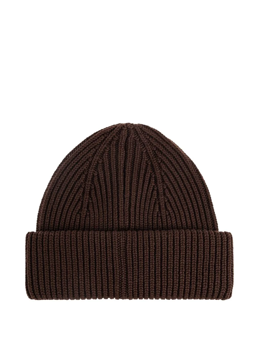 ribbed logo beanie Highlights - Brown - Ribbed knit - Logo detail - Turn-up brim Made in Italy Composition Outer: Wool 100%