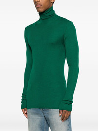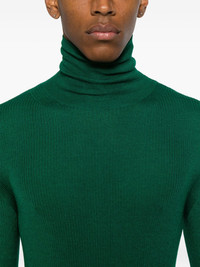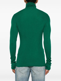 roll-neck ribbed sweater Highlights - Green - Ribbed knit - Roll neck - Long sleeves Made in Italy Composition Merino 40%, Cashmere 30%, Silk 30% SIZE & FIT Model measurements Height 6 ft 1 in(1.85 m) Bust/Chest 38.58 in(98 cm) Hips 37 in(94 cm) Waist 30.31 in(77 cm) Washing instructions Hand Wash
