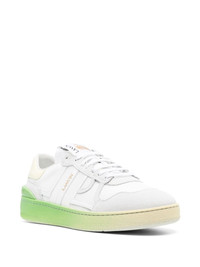 Clay panelled sneakers Adding a contemporary feel to a lifestyle sneaker, these Lanvin Clay sneakers boast leather panelling in a sleek low-top design. The white upper is contracting by the bright green outsole for a vibrant finish to the minimalist aesthetic of this style. Imported Composition Outer: Calf Suede 100%, Fabric 100% Lining: Fabric 100% Sole: Rubber 100% SIZE & FIT Measurement HEEL 1.37 in(3.5 cm) Sole height 0.98 in(2.5 cm)