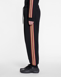 The Side Curb joggers revisit the iconic House codes: they feature the Lanvin Paris logo and a drawstring inspired by the iconic Curb sneakers. Details - Side Curb fleece joggers in solid color - Relaxed fit - Drawstring waist - "Curb"-inspired drawstring with metal tips - “Lanvin Paris” logo - Color: black - Made in Italy Size and fit - This style fits true to size, take your usual size. - For more information, please see our size guide. Composition - Main fabric: 100% cotton Cleaning and care - All our items are shipped in a luxurious Lanvin gift box done in the colors of the brand. - At Lanvin, we take great care to ensure we only select the finest materials. Please check the care label on your ready-to-wear item before proceeding with any cleaning. - If you have a question or concern, please contact our customer service department or visit one of our stores, where our staff will be happy to assist you and provide you with more information about our services. SKU: RM-TR0054-J212-H2310S