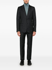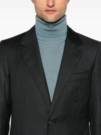 single-breasted blazer Highlights - Anthracite grey - Virgin wool - Notched lapels - Front button fastening - Long sleeves - Buttoned cuffs - Jetted chest pocket - Two front flap pockets - Central rear vent - Straight hem - Full lining Made in Italy Composition Lining: Cupro 100%, Viscose 100% Outer: Virgin Wool 100%, Buffalo Horn 100% SIZE & FIT Model measurements Height 6 ft 2 in(1.87 m) Bust/Chest 37.79 in(96 cm) Hips 37.79 in(96 cm) Waist 30.31 in(77 cm) FittingInformation Designed for a slim fit, offering a comfortable fit that sits just away from the body The vented hem offers movement at the rear Made from a midweight non-stretch fabric