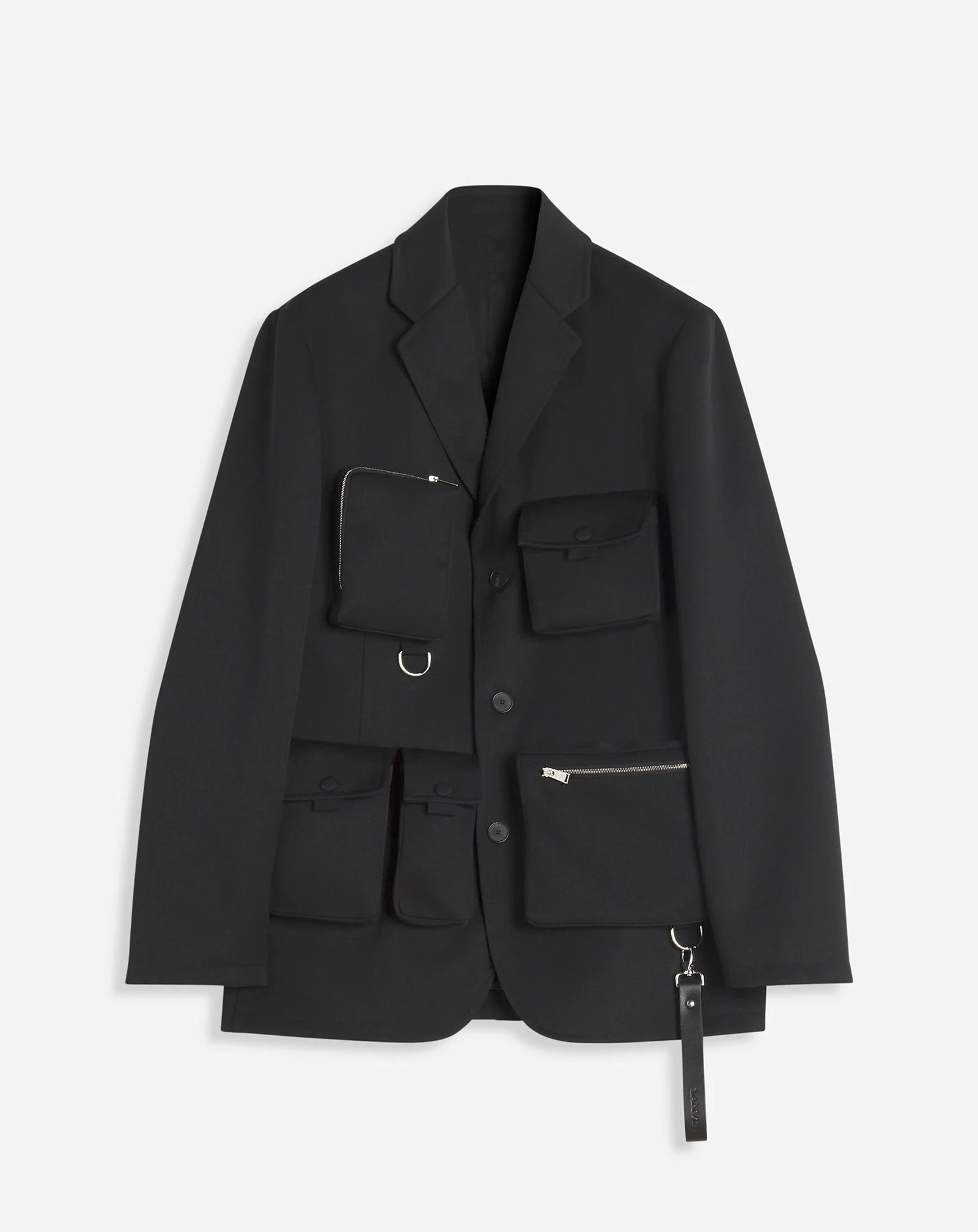 This jacket features multiple pockets with different shapes and details. Their technical aspect contrasts with the elegant lines of this garment for a unique and modern piece. Details - Utility jacket in wool - Straight fit - Collar with notched lapels - Soft non-structured shoulders - Buttoned fastening - Viscose lining - Made in Slovakia Size & fit - This style fits true to size, take your normal size - For more information, please see our size guide. Composition - Main fabric : 100% wool woven - Lining : 100% viscose woven SKU: RM-JA0080-4885-H241048