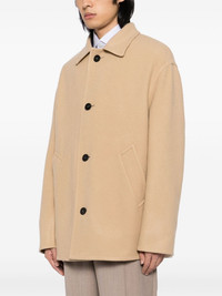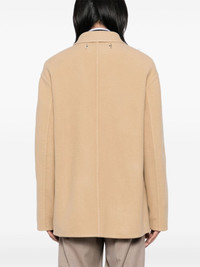 single-breasted coats Highlights - Light beige - Virgin wool/cashmere - Front button fastening - Silver-tone hardware to the rear - Spread collar - Two diagonal pockets to the sides - Long sleeves - Straight hem Made in Italy Composition Outer: Virgin Wool 59%, Cashmere 39%, Silk 2% Lining: Viscose 100% SIZE & FIT Model measurements Height 6 ft 2 in(1.88 m) Bust/Chest 34.25 in(87 cm) Hips 34.64 in(88 cm) Waist 26.77 in(68 cm) FittingInformation Designed to be unstructured, offering a loose fit throughout Made from a midweight non-stretch fabric