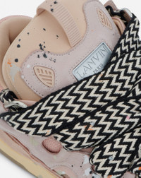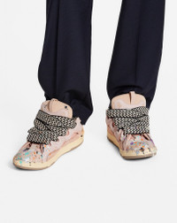 The Curb is a sneaker inspired by the 90s, with a confident design and exaggerated dimensions. Made in nappa calfskin, suede and mesh, this elaborately constructed shoe stands out for its extraordinary comfort thanks to the rounded shape, padded tongue, and curved metallic eyelets. Details - Gallery Dept. x Lanvin Curb sneakers, in hand-painted calfskin leather, personalized by artist Josué Thomas - Colors: pale pink, multicolored - Quilted tongue with Lanvin label and embossed Mother and Child logo - Double waxed and herringbone laces - Made in Portugal Composition - Main material: mesh - Secondary material: calfskin - Third material: nubuck - Sole: rubber Cleaning and care - Fragile motif. Do not use products for cleaning. Avoid contact with water. - Store in a dry, dark place in its original packaging. FM-SKRK11-DRGD-P22B5S0