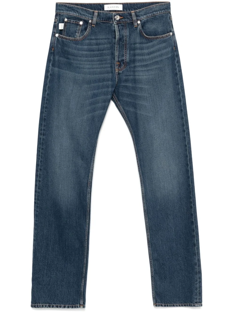 straight-leg jeans Highlights - Indigo blue - Front button and zip fastening - Classic five pockets - Belt loops - Logo patch to the rear Made in Italy Composition Lining: Cotton 100% Outer: Calf Leather 100%, Cotton 100% SIZE & FIT Model measurements Height 6 ft 2 in(1.87 m) Bust/Chest 37.79 in(96 cm) Hips 37.79 in(96 cm) Waist 30.31 in(77 cm) FittingInformation Designed with a straight leg, these jeans allow for an unrestricted and comfortable fit over the leg Sturdy and hard-wearing, this denim piece offers no stretch