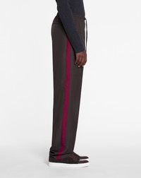 The Winter 2023 collection combines comfort and elegance with these track pants that feature a sporty spirit and meticulously crafted finishes, for a sophisticated look. Details - Techncial fabric track pants - Relaxed fit - Elasticized waist with drawstring featuring metal tips - Side and back welt pockets - Color: espresso - Made in Italy Size and fit - This style fits true to size, take your usual size. - For more information, please see our size guide. Composition - Main fabric: 100% polyester - Lining: 100% cotton Cleaning and care - All our items are shipped in a luxurious Lanvin gift box done in the colors of the brand. - At Lanvin, we take great care to ensure we only select the finest materials. Please check the care label on your ready-to-wear item before proceeding with any cleaning. - If you have a question or concern, please contact our customer service department or visit one of our stores, where our staff will be happy to assist you and provide you with more information about our services. SKU: RM-TR0027-5794-H2369348