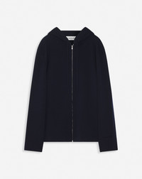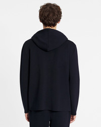 Details - Wool and viscose zip-up hoodie with embroidered Lanvin logo detail - Pair with the matching pants - Relaxed fit - Color: navy blue - Made in Italy Size and fit - The model is 187 cm / 6'1'' tall - He wears a size M Composition - Main material: 50% virgin wool - Material 2: 37% viscose - Material 3: 13% polyamide Cleaning and care - Hand wash in cold water SKU: RM-HO0006-K003-A2329L