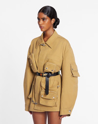 For its first collaboration, Lanvin Lab has invited the artist Future to design a collection which celebrates an innovative and individualistic vision, bringing together music and fashion. This practical jacket features multiple pockets and a contemporary design. It features the Lanvin jacron, featuring the eagle, one of Future's emblems. Details - Lanvin x Future asymmetrical utility-style twill jacket - Faded effect - Asymmetrical fit with soft, unstructured shoulders - Multiple utility pockets - Snaps on the cuffs - Invisible fastening and fireman's clasp - Lanvin Eagle leather jacron on the back - Made in Italy Size & fit - For more information, please see our size guide. Composition - Main fabric : 100% cotton woven SKU: RM-JA0044-5921-P2408144