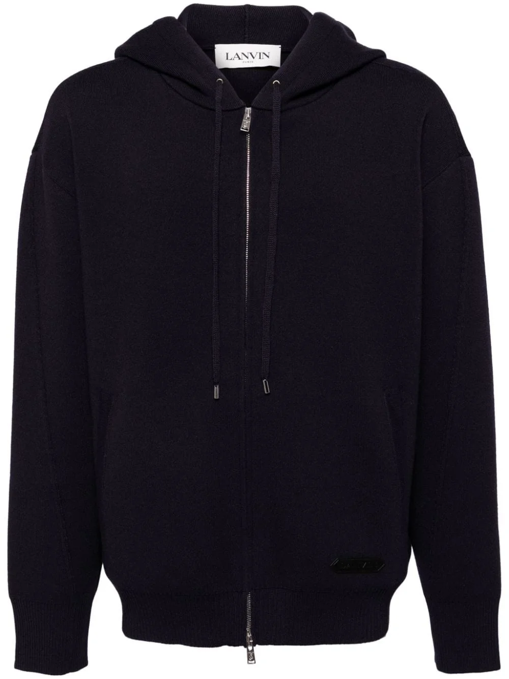 zip up hoodie Highlights - Navy blue - Wool blend - Front zip fastening - Drawstring hood - Two front welt pockets - Logo plaque near hem - Ribbed cuffs and hem Imported Composition Merino 92%, Polyamide 7%, Elastane 1%