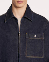 Details - Zipped denim shirt with a large patch pocket on the front - Raw hem at the bottom of the body - Relaxed fit - Color: navy blue - Made in Italy Size and fit - The model is 189 cm / 6'2" tall - He wears a size 46 Composition - Main material: 100% cotton Cleaning and care - Turn inside out before cleaning - Wash separately - Gently iron on the reverse side SKU: RM-SI0204-D006-A232948