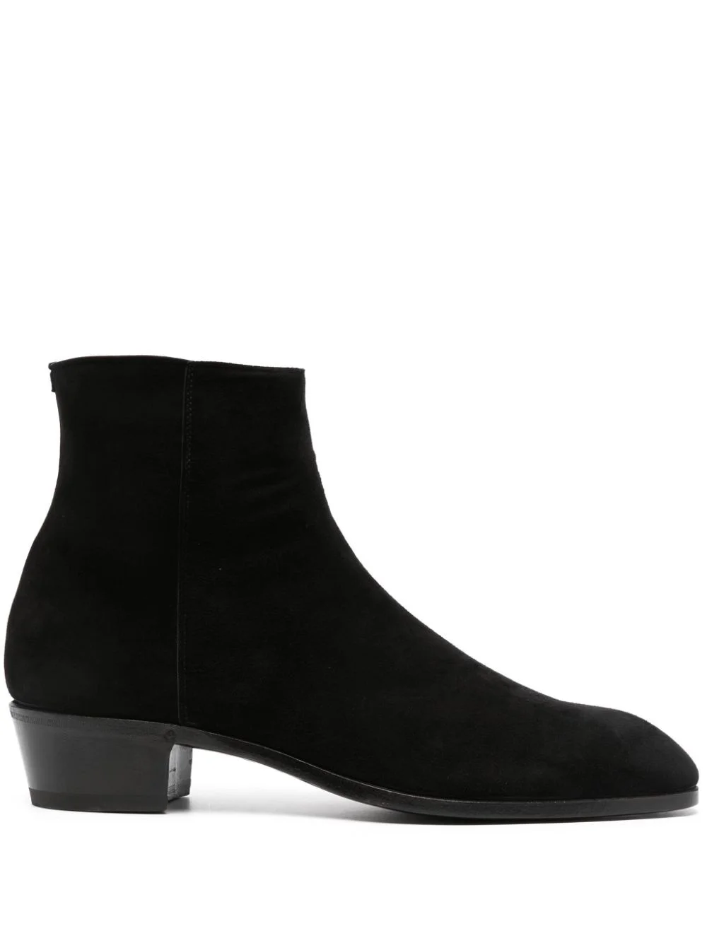 45mm suede ankle boots Highlights - Black - Calf suede - Side zip fastening - 45mm low block heel - Ankle-length - Square toe - Branded leather insole - Leather lining - Leather sole Made in Italy Composition Lining: Calf Leather 100% Sole: Calf Leather 100%, Rubber 100% Outer: Calf Suede 100% SIZE & FIT Measurement HEEL 1.77 in(4.5 cm) HEIGHT 5.9 in(15 cm)