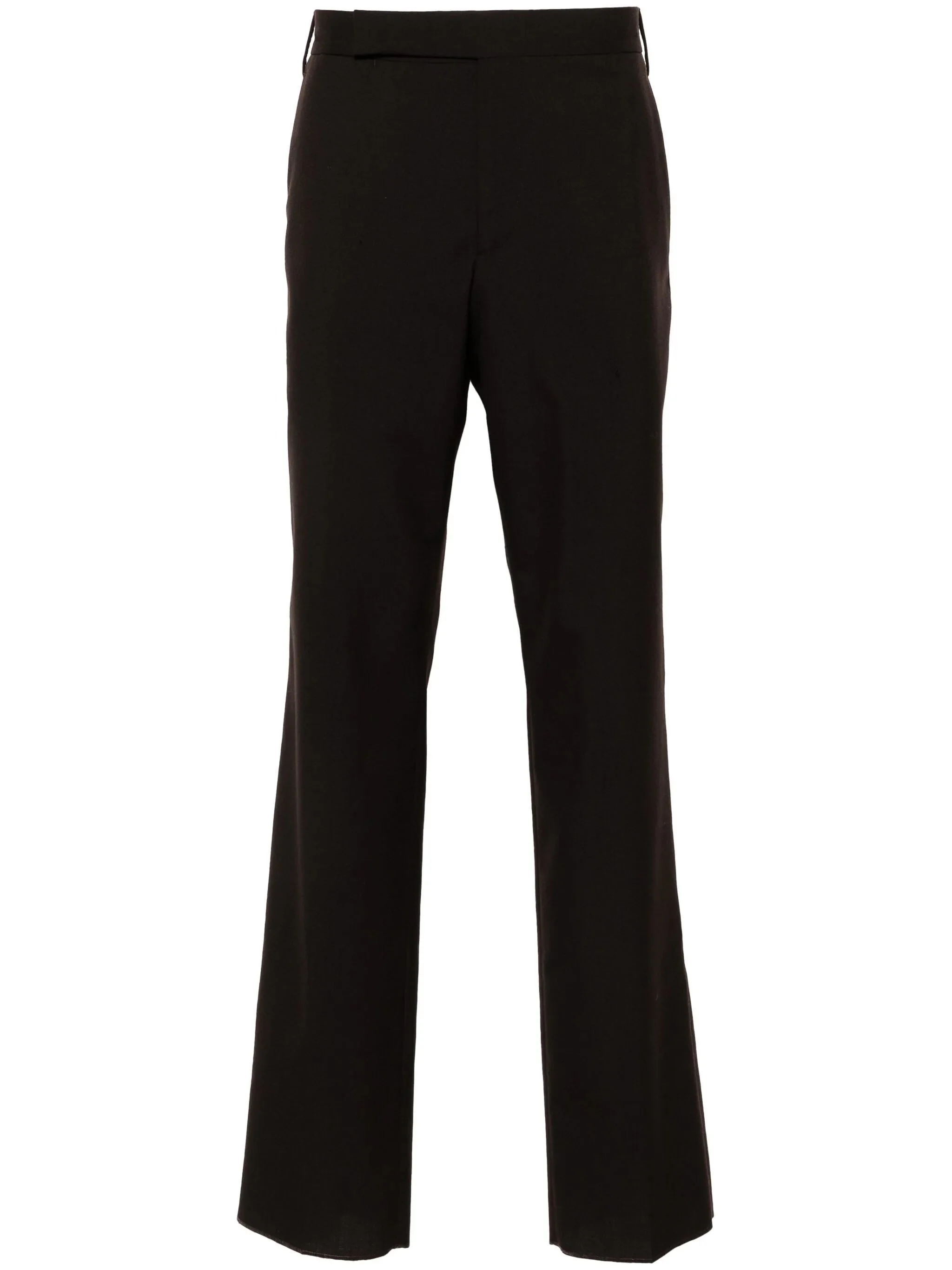 DARK CEDAR BROWN VIRGIN WOOL TAILORED DESIGN CONCEALED FRONT BUTTON, HOOK AND ZIP FASTENING BELT LOOPS TWO SIDE SLASH POCKETS PRESSED CREASE TWO REAR BUTTON-FASTENING JETTED POCKETS FULL-LENGTH STRAIGHT LEG