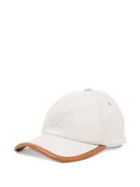 Baseball cap Highlights - Cream - Rear adjustable strap - Embroidered logo - Five panel construction Made In Italy Composition Flax 90%, Calf Leather 10%