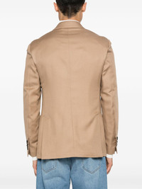 Special blazer Highlights - Beige - Twill weave - Brooch detail - Dart detailing - Peak lapels - Double-breasted button fastening - Long sleeves - Faux buttoned cuffs - Chest welt pocket - Two side patch pockets - English rear vents - Partial lining - Straight hem Made in Italy Composition Outer: Virgin Wool 35%, Cashmere 35%, Silk 30% Lining: Viscose 52%, Cupro 48% SIZE & FIT Model measurements Height 6 ft 1 in(1.86 m) Bust/Chest 37.4 in(95 cm) Hips 36.22 in(92 cm) Waist 29.52 in(75 cm) FittingInformation Designed for a slim fit, offering a comfortable fit that sits just away from the body The vented hem offers movement at the rear Made from a midweight non-stretch fabric This piece fits true to size – take your usual size