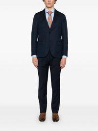brooch-detail blazer Highlights - Oxford blue - Front button fastening - Buttoned cuffs - Chest welt pocket - English rear vents Made in Italy Composition Wool 100%, Cupro 52%, Viscose 48% SIZE & FIT Model measurements Height 6 ft 2 in(1.87 m) Bust/Chest 38.97 in(99 cm) Hips 37.99 in(96.5 cm) Waist 29.52 in(75 cm) FittingInformation Designed for a slim fit, offering a comfortable fit that sits just away from the body The vented hem offers movement at the rear Made from a midweight non-stretch fabric