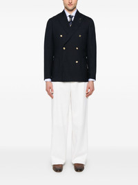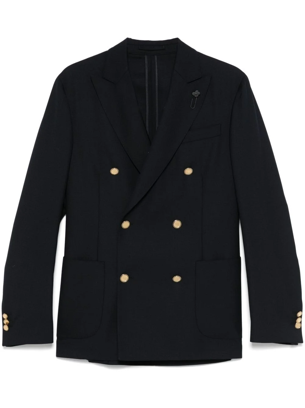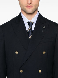 brooch-detail blazer Highlights - Midnight blue - Double-breasted button fastening - Internal pocket - English rear vents - Chest welt pocket Made in Italy Composition Outer: Polyester 55%, Virgin Wool 45% Lining: Viscose 52%, Cupro 48% SIZE & FIT Model measurements Height 6 ft 2 in(1.87 m) Bust/Chest 37.79 in(96 cm) Hips 37.79 in(96 cm) Waist 30.31 in(77 cm) FittingInformation Designed for a regular fit, allowing for a comfortably loose fit throughout the body The vented hem offers movement at the rear Made from a midweight non-stretch fabric