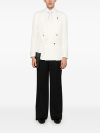 brooch-detail blazer Highlights - White - Double-breasted button fastening - Internal jetted pocket - Shoulder pads - Two front jetted pockets Made in Italy Composition Viscose 98%, Silk 2% SIZE & FIT Model measurements Height 6 ft 2 in(1.87 m) Bust/Chest 36.41 in(92.5 cm) Hips 35.43 in(90 cm) Waist 29.52 in(75 cm) FittingInformation Designed for a regular fit, allowing for a comfortably loose fit throughout the body The internal shoulder pads offer a structured shape Made from a midweight non-stretch fabric