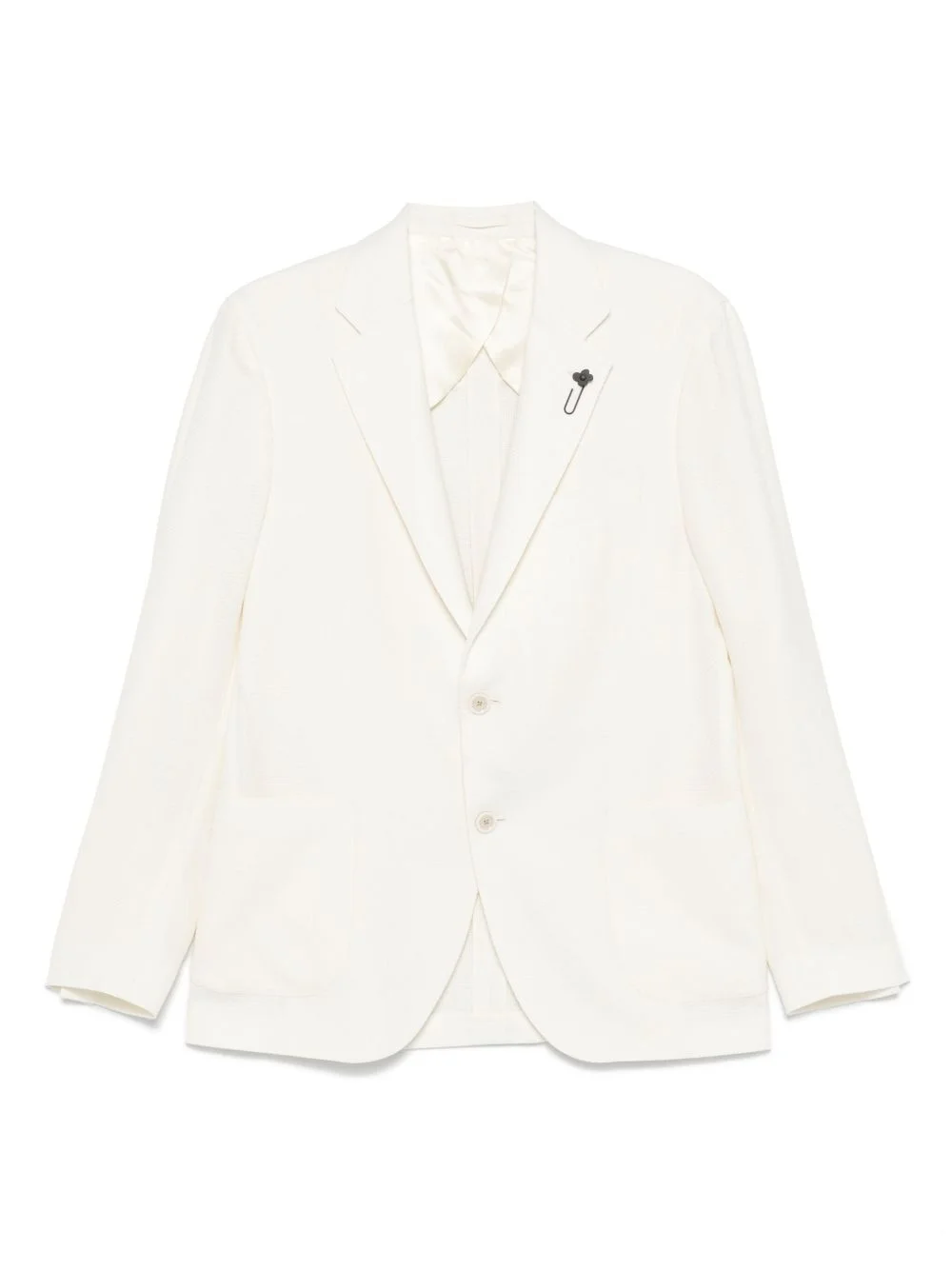 basketweave blazer Highlights - White - Front button fastening - Two front patch pockets - English rear vents - Multiple internal slip pockets Made in Italy Composition Wool 76%, Viscose 52%, Cupro 48%, Linen/Flax 12%, Silk 12% SIZE & FIT Model measurements Height 6 ft 2 in(1.88 m) Bust/Chest 37.4 in(95 cm) Hips 38.58 in(98 cm) Waist 31.1 in(79 cm) FittingInformation Designed for a slim fit, offering a comfortable fit that sits just away from the body The vented hem offers movement at the rear Made from a midweight non-stretch fabric