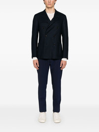 brooch-detail blazer Highlights - Navy blue - Double-breasted button fastening - Buttoned cuffs - Two side patch pockets - English rear vents Made in Italy Composition Outer: Cotton 100% Lining: Polyester 100%, Viscose 52%, Cupro 48% SIZE & FIT Model measurements Height 6 ft 2 in(1.87 m) Bust/Chest 38.97 in(99 cm) Hips 37.99 in(96.5 cm) Waist 29.52 in(75 cm) FittingInformation Designed for a slim fit, offering a comfortable fit that sits just away from the body The vented hem offers movement at the rear Made from a midweight non-stretch fabric