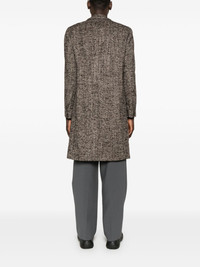 brooch-detail coat Highlights - Chocolate brown/beige - Wool blend - Interlock weave - Notched lapels - Brooch detail - Long sleeves - Buttoned-cuff sleeves - Chest welt pocket - Two side flap pockets - Central rear vent - Multiple internal slip pockets - Full lining - Straight hem - Front button fastening Made in Italy Composition Outer: Wool 50%, Acrylic 25%, Polyester 17%, Nylon 8% Lining: Acetate 65%, Viscose 35% SIZE & FIT Model measurements Height 6 ft 2 in(1.87 m) Bust/Chest 36.41 in(92.5 cm) Hips 37 in(94 cm) Waist 29.52 in(75 cm) FittingInformation Designed to be unstructured, offering a loose fit throughout The vented hem offers movement at the rear Made from a midweight non-stretch fabric This piece fits true to size – take your usual size Washing instructions Dry Clean Only