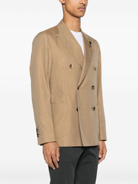 brooch-detail double-breasted blazer Highlights - Camel brown - Cotton - Interlock twill weave - Peak lapels with brooch detail - Double-breasted button fastening - Long sleeves with buttoned cuffs - Chest welt pocket - Two side patch pockets - English rear vents - Internal slip pocket - Straight hem - Partial lining Made in Italy Composition Lining: Viscose 52%, Cupro 48% Outer: Cotton 100% SIZE & FIT Model measurements Height 6 ft 2 in(1.87 m) Bust/Chest 38.18 in(97 cm) Hips 36.61 in(93 cm) Waist 29.13 in(74 cm) FittingInformation Designed for a slim fit, offering a comfortable fit that sits just away from the body The vented hem offers movement at the rear Made from a midweight stretch fabric, this piece offers elasticity and flexibility when worn This piece fits true to size – take your usual size Washing instructions Dry Clean Only
