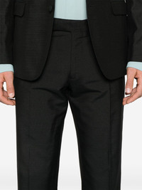 brooch-detail suit Highlights - Black - Front button fastening - Concealed front button, hook and zip fastening - Internal pocket - American rear vent Made in Italy Composition Outer: Silk 100% Lining: Viscose 52%, Cupro 48% SIZE & FIT Model measurements Height 6 ft 1 in(1.85 m) Bust/Chest 35.82 in(91 cm) Hips 37.79 in(96 cm) Waist 29.13 in(74 cm) FittingInformation Tailored for a slim fit, offering a comfortable fit that sits just away from the body The internal shoulder pads offer a structured shape Made from a midweight non-stretch fabric