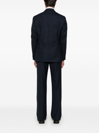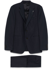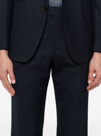 single-breasted suit Highlights - Navy blue - Front button fastening - Concealed front button, hook and zip fastening - Chest welt pocket - Belt loops Made in Italy Composition Lining: Viscose 52%, Cupro 48% Outer: Virgin Wool 100% SIZE & FIT Model measurements Height 6 ft 2 in(1.87 m) Bust/Chest 37.79 in(96 cm) Hips 38.18 in(97 cm) Waist 31.49 in(80 cm) FittingInformation Tailored for a slim fit, offering a comfortable fit that sits just away from the body The unfinished hems allow for the length to be altered Made from a midweight non-stretch fabric