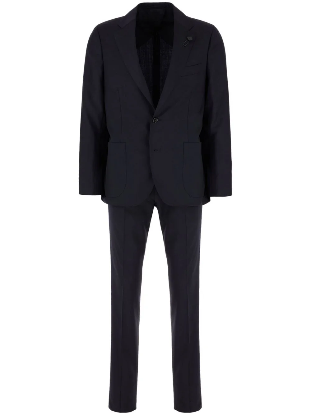 brooch-detail suit Highlights - Midnight blue - Front button fastening - Chest welt pocket - Two side patch pockets - Buttoned cuffs Imported Composition Virgin Wool 100% Washing instructions Read Manufacturer Guidelines