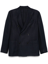checked blazer Highlights - Navy blue - Double-breasted button fastening - Chest welt pocket - Two side patch pockets - Buttoned-cuff sleeves Made in Italy Composition Cotton 66%, Viscose 52%, Cupro 48%, Linen/Flax 34% SIZE & FIT Model measurements Height 6 ft 2 in(1.87 m) Bust/Chest 37.79 in(96 cm) Hips 37.79 in(96 cm) Waist 30.31 in(77 cm) FittingInformation Designed for a slim fit, offering a comfortable fit that sits just away from the body The vented hem offers movement at the rear Made from a midweight non-stretch fabric, this piece offers minimal elasticity when worn