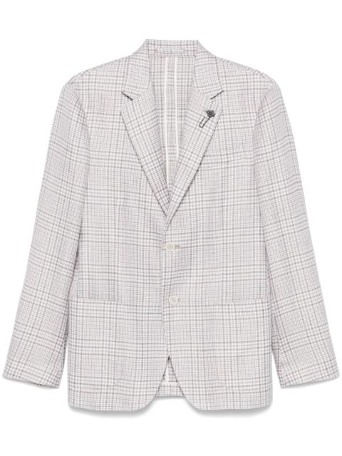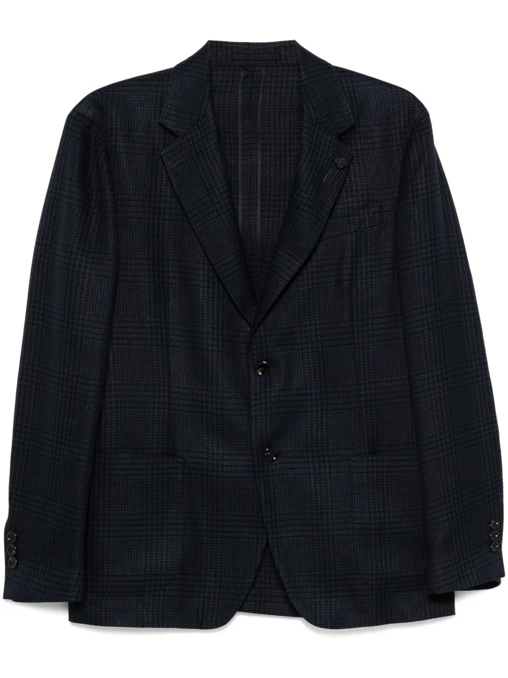 checked blazer Highlights - Indigo blue - Front button fastening - Chest welt pocket - Two front patch pockets - Buttoned cuffs Made in Italy Composition Cotton 66%, Linen/Flax 34% SIZE & FIT Model measurements Height 6 ft 2 in(1.87 m) Bust/Chest 38.18 in(97 cm) Hips 36.61 in(93 cm) Waist 29.13 in(74 cm) FittingInformation Designed for a slim fit, offering a comfortable fit that sits just away from the body The vented hem offers movement at the rear Made from a midweight non-stretch fabric Washing instructions Dry Clean Only