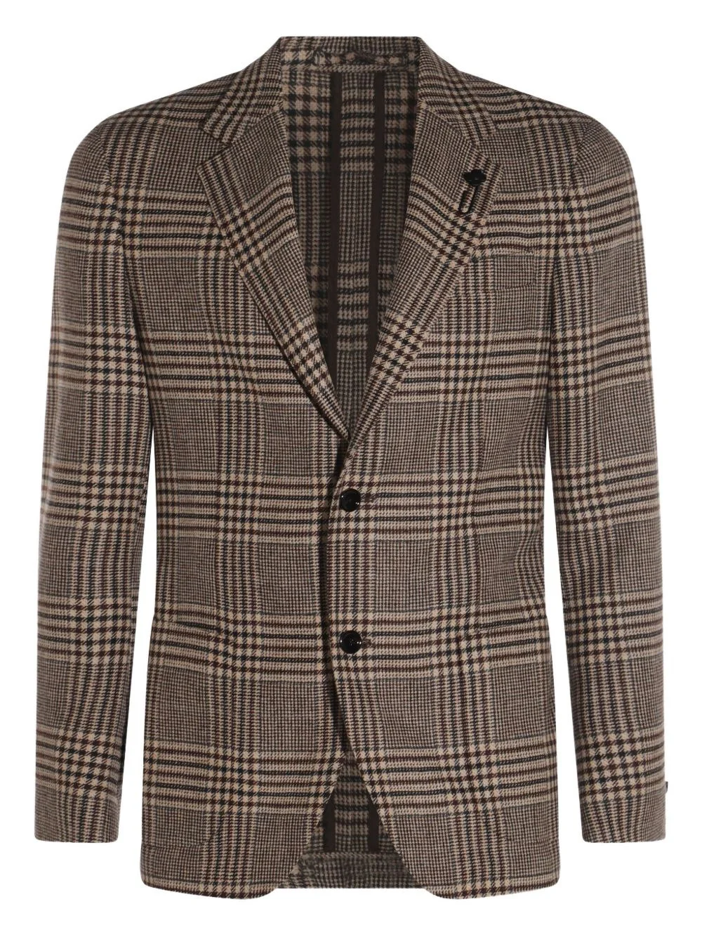 checked flower-brooch blazer Highlights - Brown - Checked pattern - Button fastening - Patch pockets - Flower brooch - Notched lapels Made in Italy Composition Wool 94%, Cashmere 6% Washing instructions Read Manufacturer Guidelines