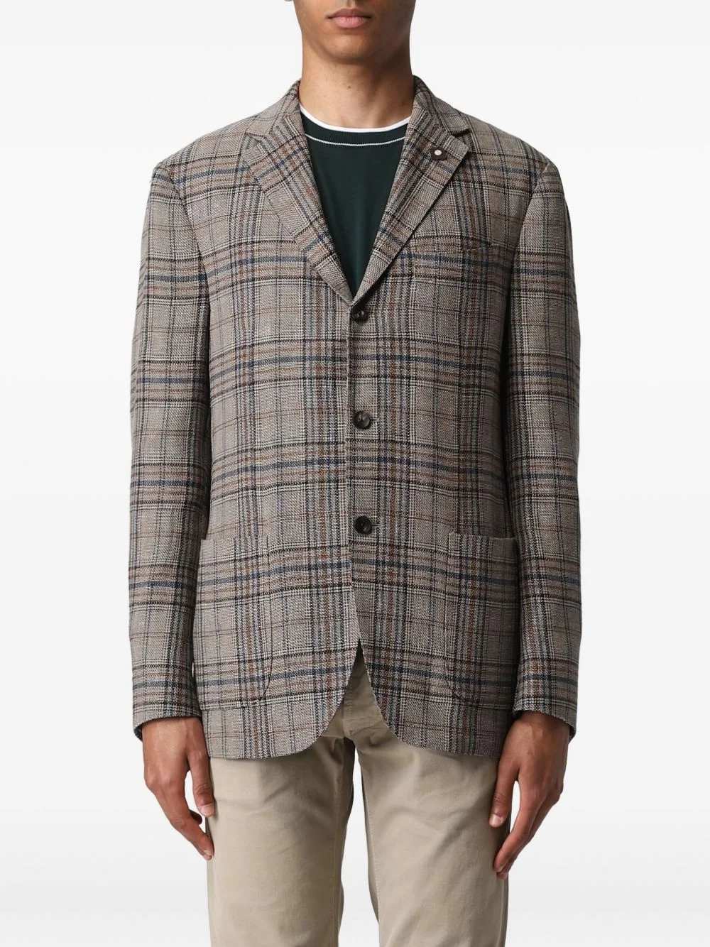 checked single-breasted blazer Highlights Imported Composition Linen/Flax 39%, Silk 31%, Virgin Wool 30%