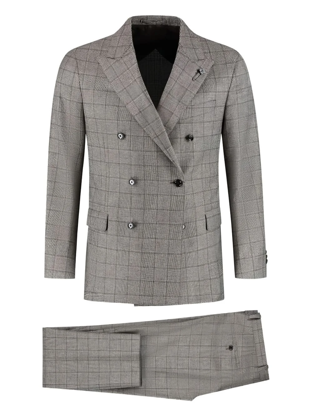 checked suit Highlights - Grey - Checked pattern - Double-breasted - Button fastening - Flap pockets - Pin detail Imported Composition Fabric 100% Washing instructions Read Manufacturer Guidelines
