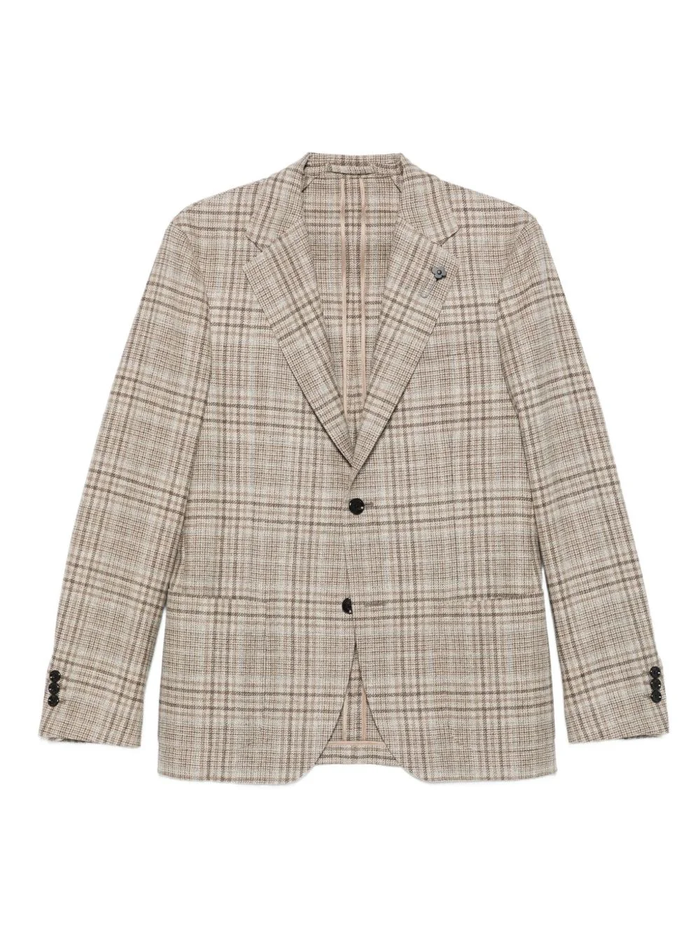 checked two-button blazer Highlights Made in Italy Composition Wool 94%, Viscose 52%, Cupro 48%, Cashmere 6% SIZE & FIT Model measurements Height 6 ft 0 in(1.84 m) Bust/Chest 37.79 in(96 cm) Hips 37 in(94 cm) Waist 31.49 in(80 cm)