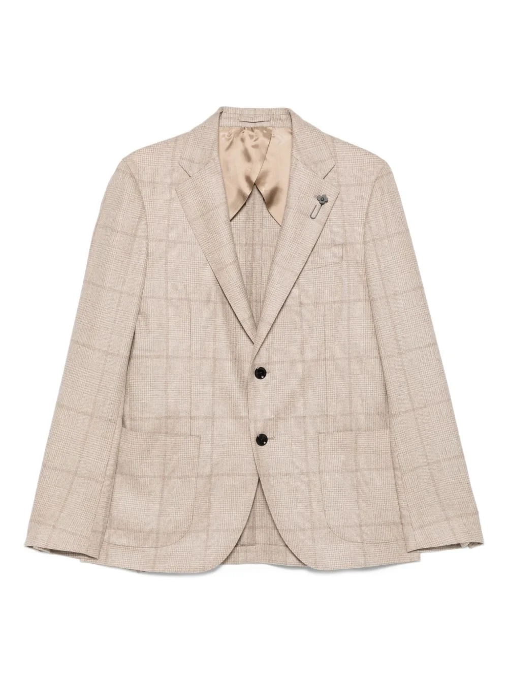 checked two-button jacket Highlights - Beige - Checked pattern - Two-button fastening - Patch pockets - Notched lapels - Long sleeves Made in Italy Composition Cashmere 100%, Viscose 52%, Cupro 48% SIZE & FIT Model measurements Height 6 ft 1 in(1.85 m) Bust/Chest 35.82 in(91 cm) Hips 37.79 in(96 cm) Waist 29.13 in(74 cm) Washing instructions Dry Clean Only