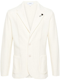 chevron-knit single-breasted blazer Highlights - Cream white - Cotton blend - Crochet knit - Notched lapels - Front button fastening - Long sleeves - Two front patch pockets - American rear vent - Straight hem Made in Italy Composition Cotton 60%, Viscose 40% SIZE & FIT Model measurements Height 6 ft 2 in(1.87 m) Bust/Chest 36.41 in(92.5 cm) Hips 37 in(94 cm) Waist 29.52 in(75 cm) FittingInformation Designed for a slim fit, offering a comfortable fit that sits just away from the body The vented hem offers movement at the rear Made from a midweight non-stretch fabric, this piece offers minimal elasticity when worn This piece fits true to size – take your usual size