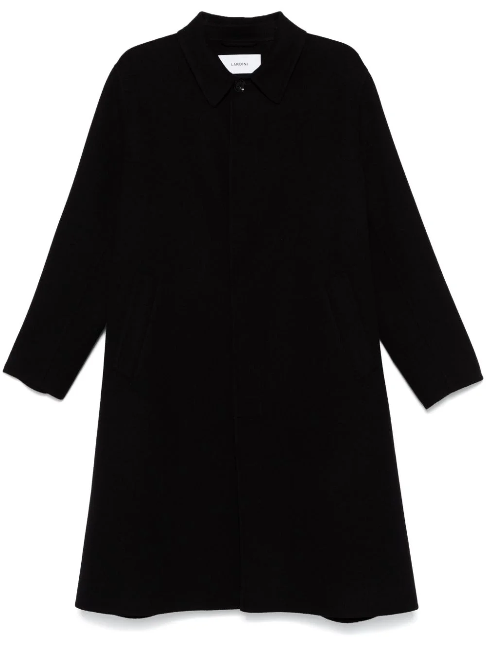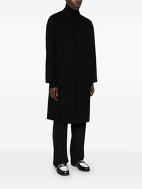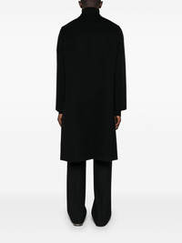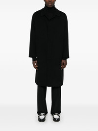 wool coat Highlights - Black - Virgin wool - Felted finish - Concealed front button fastening - Classic collar - Long sleeves - Two side slit pockets - Central rear vent - Unlined - Straight hem Made in Italy Composition Lining: Cotton 100% Outer: Virgin Wool 100% SIZE & FIT Model measurements Height 6 ft 0 in(1.84 m) Bust/Chest 35.82 in(91 cm) Hips 37 in(94 cm) Waist 28.34 in(72 cm) FittingInformation Designed to be unstructured, offering a loose fit throughout The vented hem offers movement at the rear Made from a midweight non-stretch fabric