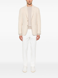 corduroy blazer Highlights - Light beige - Cotton-alpaca wool blend - Corduroy - Notched lapels - Long sleeves - Buttoned-cuff sleeves - Chest welt pocket - Two side patch pockets - English rear vents - Multiple internal slip pockets - Partial lining - Front button fastening Made in Italy Composition Outer: Cotton 87%, Alpaca Wool 13% Lining: Viscose 52%, Cupro 48% SIZE & FIT Model measurements Height 6 ft 2 in(1.87 m) Bust/Chest 37.79 in(96 cm) Hips 37.79 in(96 cm) Waist 30.31 in(77 cm) FittingInformation Designed for a slim fit, offering a comfortable fit that sits just away from the body The vented hem offers movement at the rear Made from a midweight non-stretch fabric This piece fits true to size – take your usual size