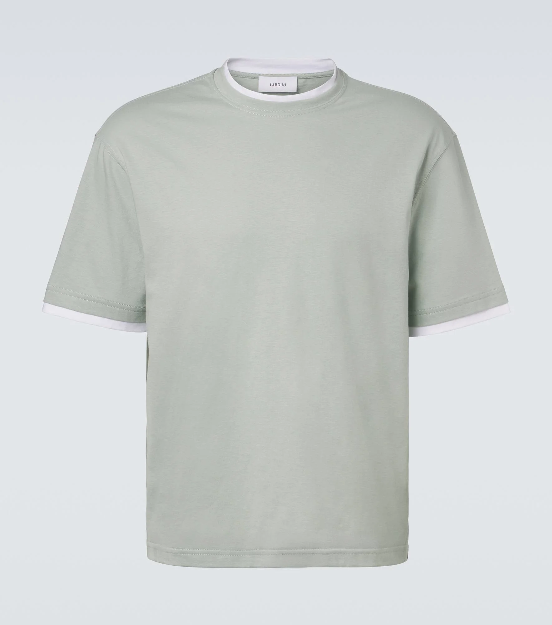 A family-owned business with a legacy of Italian-made tailoring, Lardini unceasingly strives to bring together tradition and innovation. This T-shirt is made in Italy from pure cotton with contrast-trims. Product Details - Material: 100% cotton - Care instructions: dry clean - Made in Italy - Color: green - Designer color name: Blue - Item number: P01137495 Size & Fit - True to size - Dropped shoulders - Straight fit - Non-stretchy fabric - Falls to the hip - The model seen in the picture is 178cm-5'10", cup size %cupsize%, and wearing a size L