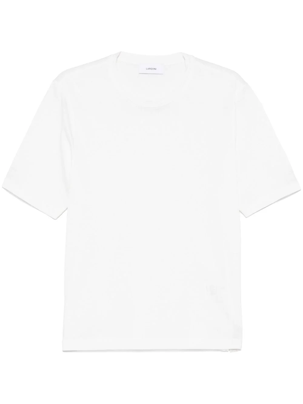 crew-neck T-shirt Highlights - White - Short side slits - Mini logo tag - Short sleeves Made in Italy Composition Cotton 70%, Silk 30% SIZE & FIT Model measurements Height 6 ft 2 in(1.87 m) Bust/Chest 38.18 in(97 cm) Hips 36.61 in(93 cm) Waist 29.13 in(74 cm) FittingInformation Designed for a relaxed fit, this piece allows for comfort and movement when worn Made from a lightweight non-stretch fabric, this piece offers minimal elasticity when worn