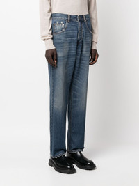 distressed straigh-leg jeans Highlights - Indigo blue - Cotton blend - Washed denim - Whiskering effect - Distressed effect - Mid-rise - Straight leg - Logo patch to the rear - Belt loops - Front button and zip fastening - Classic five pockets Made in Italy Composition Outer: Cotton 100% Lining: Polyester 60%, Cotton 40% SIZE & FIT Model measurements Height 6 ft 2 in(1.87 m) Bust/Chest 32.28 in(82 cm) Hips 33.85 in(86 cm) Waist 25.98 in(66 cm)
