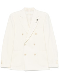 double-breasted blazer Highlights - White - Front button fastening - Chest welt pocket - Two side patch pockets - English rear vents Made in Italy Composition Outer: Wool 67%, Cotton 17%, Polyester 15%, Elastane 1% Lining: Viscose 52%, Cupro 48% SIZE & FIT Model measurements Height 6 ft 2 in(1.87 m) Bust/Chest 38.18 in(97 cm) Hips 36.61 in(93 cm) Waist 29.13 in(74 cm) FittingInformation Designed for a slim fit, offering a comfortable fit that sits just away from the body The vented hem offers movement at the rear Made from a midweight fabric