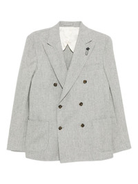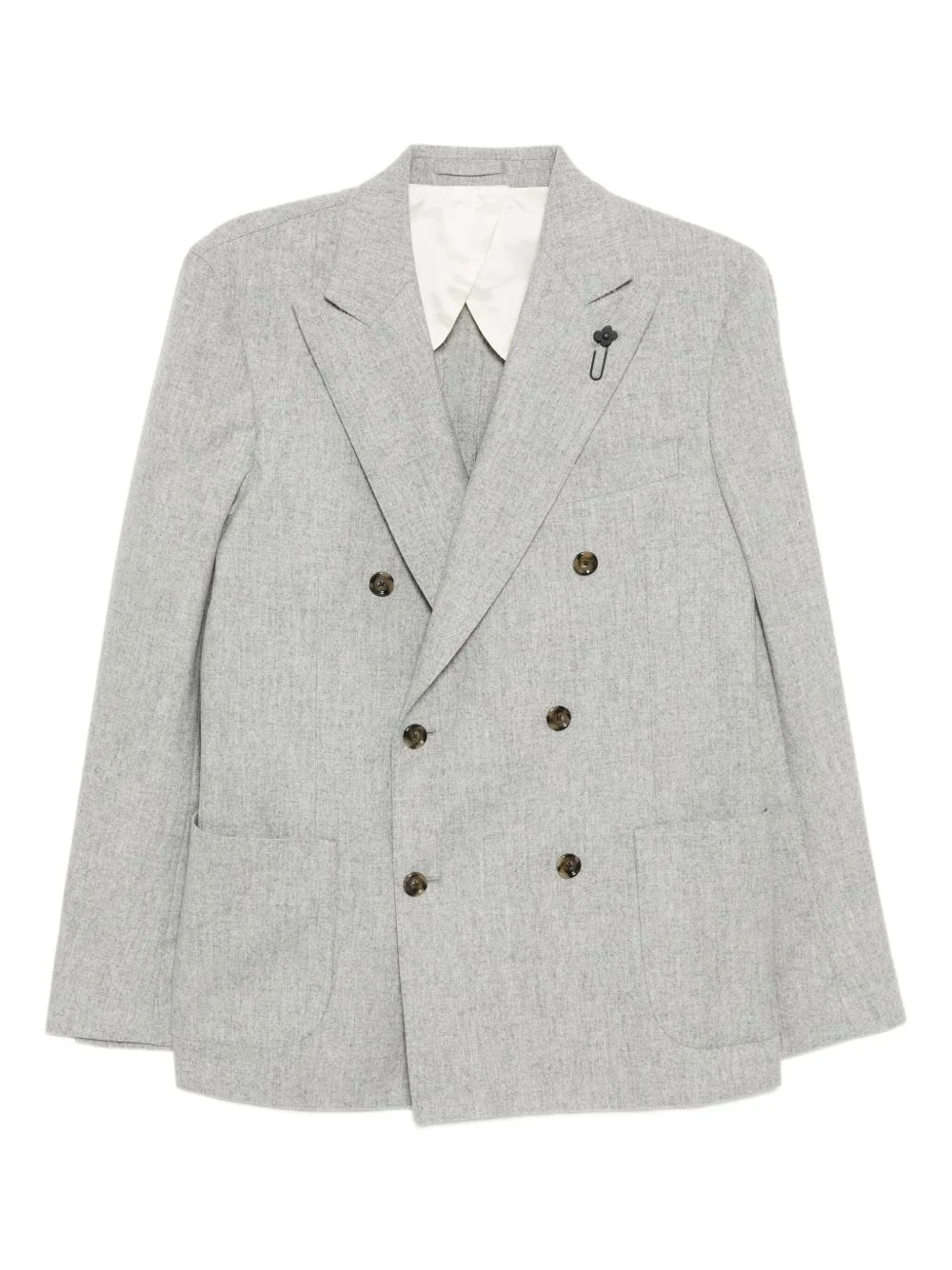 double-breasted blazer Highlights - Light grey - Front button fastening - Chest welt pocket - Two side patch pockets - Buttoned-cuff sleeves Made in Italy Composition Virgin Wool 90%, Cashmere 10% SIZE & FIT Model measurements Height 6 ft 3 in(1.9 m) Bust/Chest 19.29 in(49 cm) Hips 38.58 in(98 cm) Waist 32.28 in(82 cm) FittingInformation Designed for a regular fit, allowing for a comfortably loose fit throughout the body The vented hem offers movement at the rear Made from a midweight non-stretch fabric