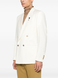 double-breasted blazer Highlights - Off-white - Double-breasted closure - Gold-tone buttons - Peak lapels - Long sleeves - Buttoned cuffs Made in Italy Composition Virgin Wool 100%, Viscose 52%, Cupro 48% SIZE & FIT Model measurements Height 6 ft 1 in(1.85 m) Bust/Chest 35.82 in(91 cm) Hips 37.79 in(96 cm) Waist 29.13 in(74 cm) Washing instructions Dry Clean Only