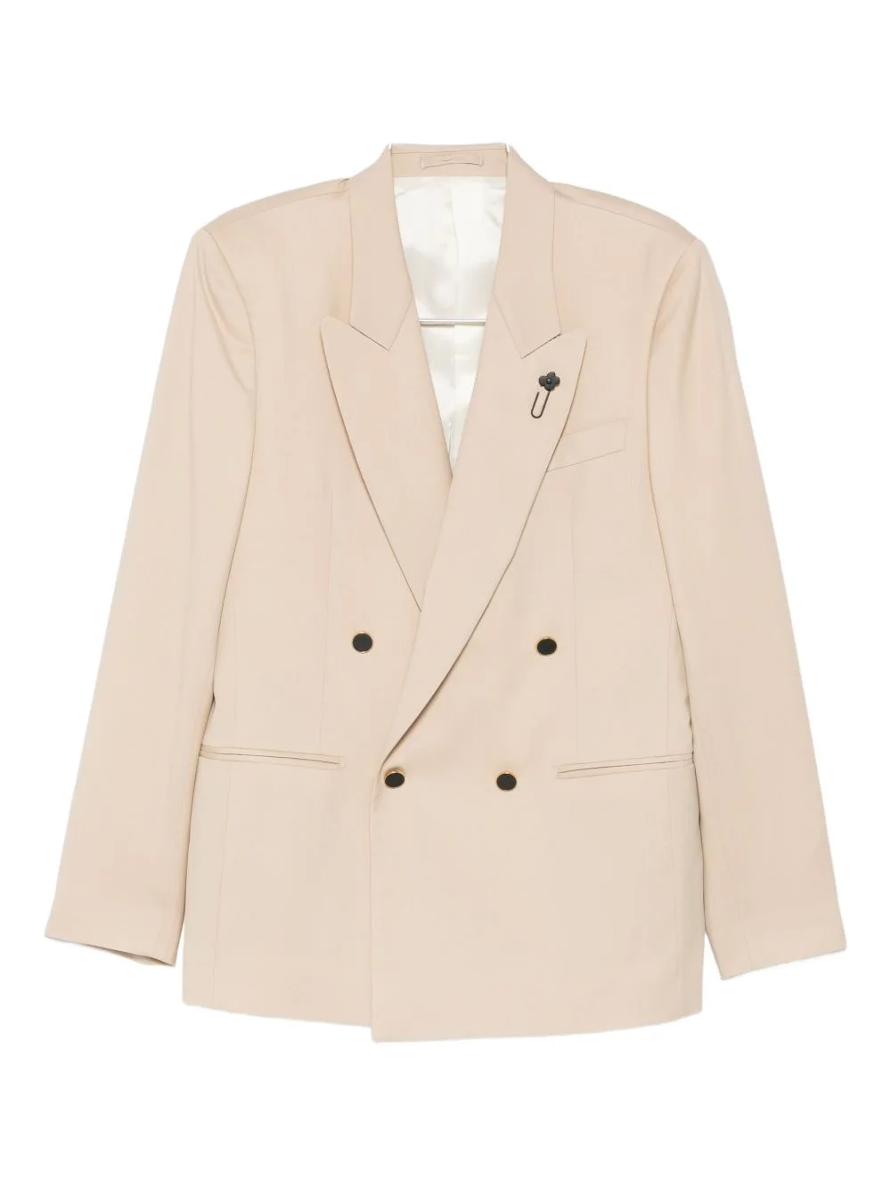 double-breasted jacket Highlights - Beige - Double-breasted button fastening - Peak lapels - Front welt pocket - Pin detail Imported Composition Fabric 100% Washing instructions Read Manufacturer Guidelines