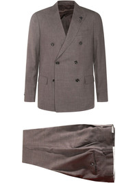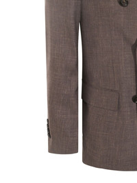 double-breasted suit Highlights - Brown - Double-breasted button fastening - Two side flap pockets - Long sleeves - Rear button-fastening jetted pocket - Set of two Made in Italy Composition Wool 71%, Silk 15%, Linen/Flax 14% SIZE & FIT FittingInformation Tailored for a slim fit, offering a comfortable fit that sits just away from the body The unfinished hems allow for the length to be altered Made from a midweight non-stretch fabric