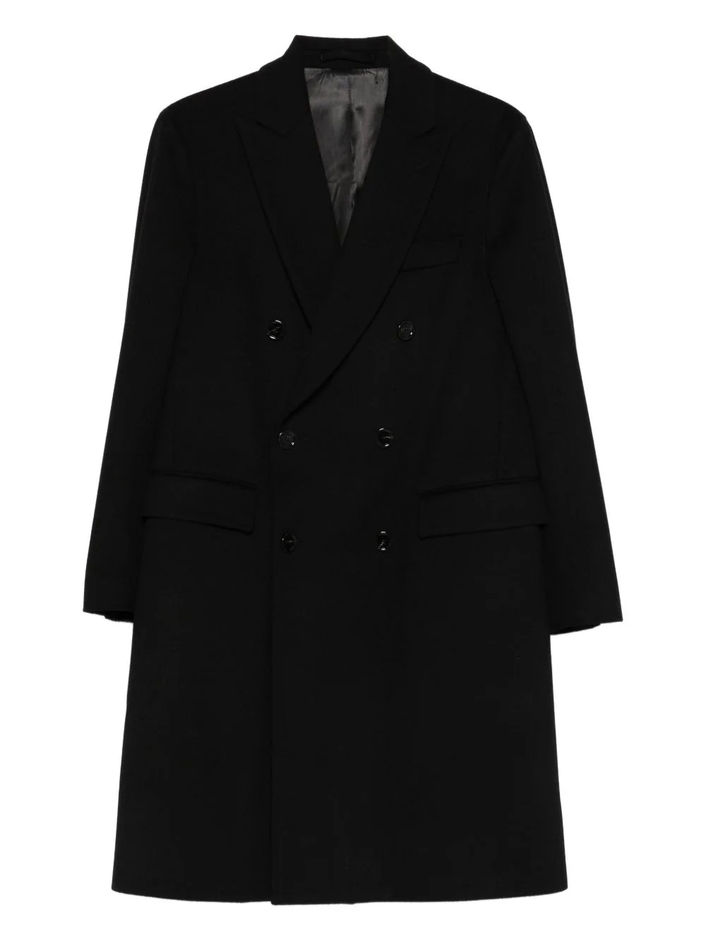 double-breasted virgin-wool coat Highlights - Black - Virgin wool - Double-breasted fastening - Long sleeves Made in Italy Composition Virgin Wool 100%, Acetate 65%, Viscose 35% SIZE & FIT Model measurements Height 6 ft 1 in(1.85 m) Bust/Chest 35.82 in(91 cm) Hips 37.79 in(96 cm) Waist 29.13 in(74 cm) Washing instructions Dry Clean Only