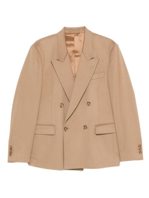 double-breasted wool blazer Highlights - Camel - Double-breasted closure - Peak lapels - Welt-flap pockets - Long sleeves - Buttoned cuffs Made in Italy Composition Wool 100% SIZE & FIT Model measurements Height 6 ft 2 in(1.87 m) Bust/Chest 36.41 in(92.5 cm) Hips 37 in(94 cm) Waist 29.52 in(75 cm) Washing instructions Read Manufacturer Guidelines