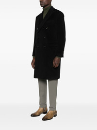 double-breasted wool coat Highlights Made in Italy Composition Virgin Wool 100%, Acetate 65%, Viscose 35% SIZE & FIT Model measurements Height 6 ft 0 in(1.84 m) Bust/Chest 37.79 in(96 cm) Hips 37 in(94 cm) Waist 31.49 in(80 cm)