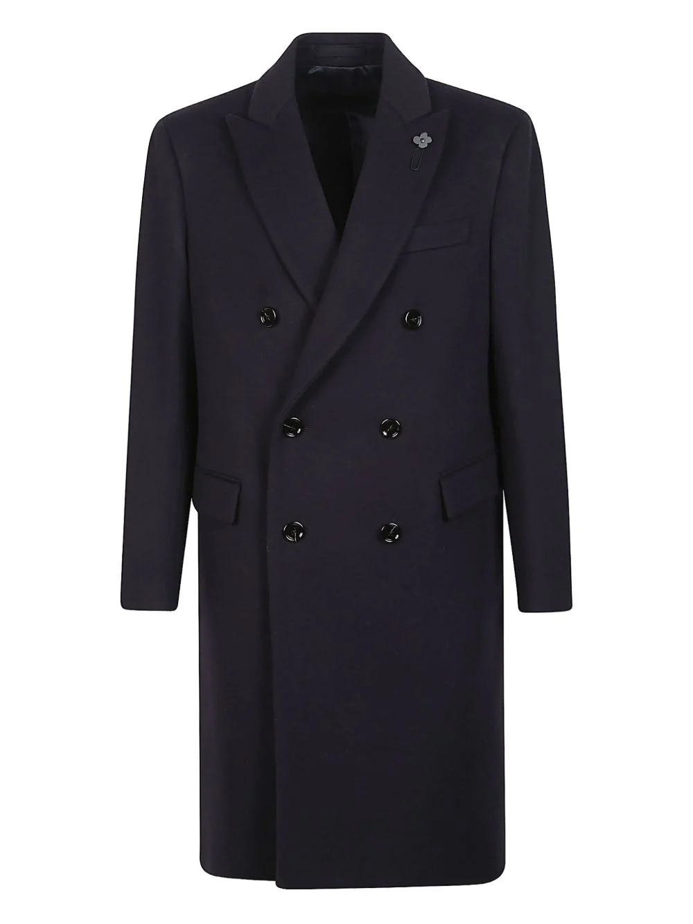 double-breasted wool coat Highlights - Blue - Double-breasted closure - Peak lapels - Button detailing - Side flap pockets - Wool fabric Made in Italy Composition Wool 100% Washing instructions Read Manufacturer Guidelines